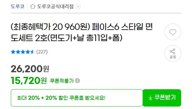 도루코 페이스6 스타일 면도세트 2호 할인 정보 포스팅입니다.