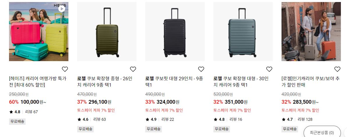 할인 브랜드 : 쌤소나이트, 로젤, 헤이즈 등