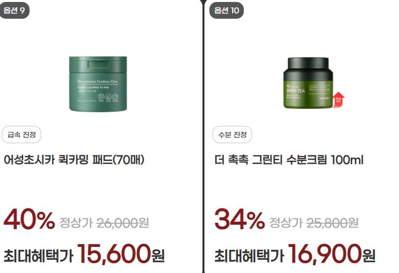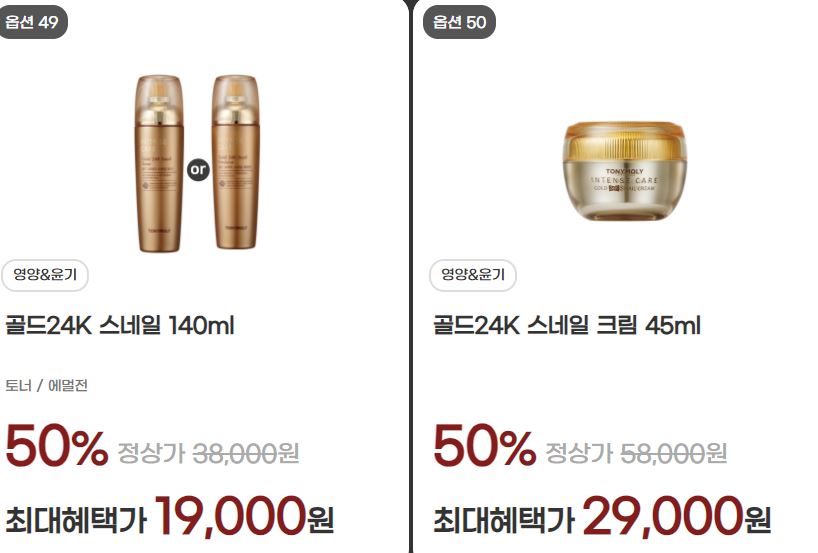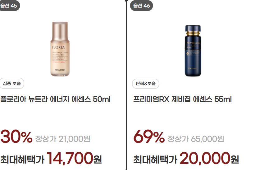 할인 품목 : 토너, 수분크림, 에센스 등