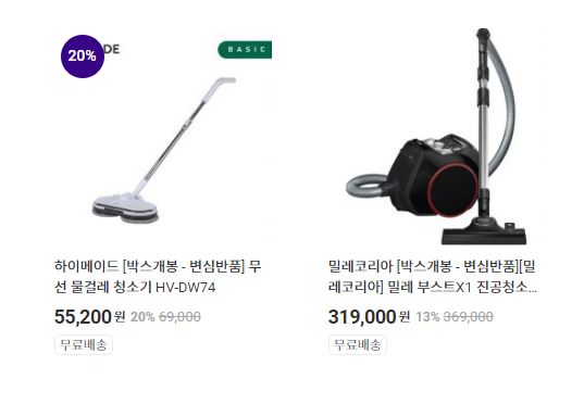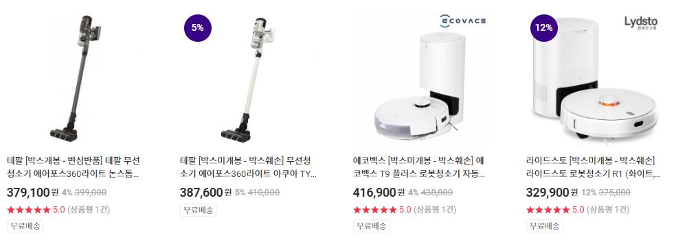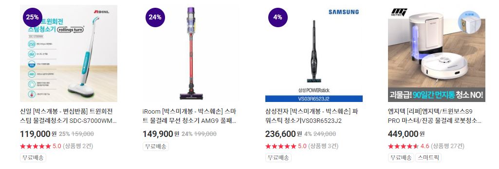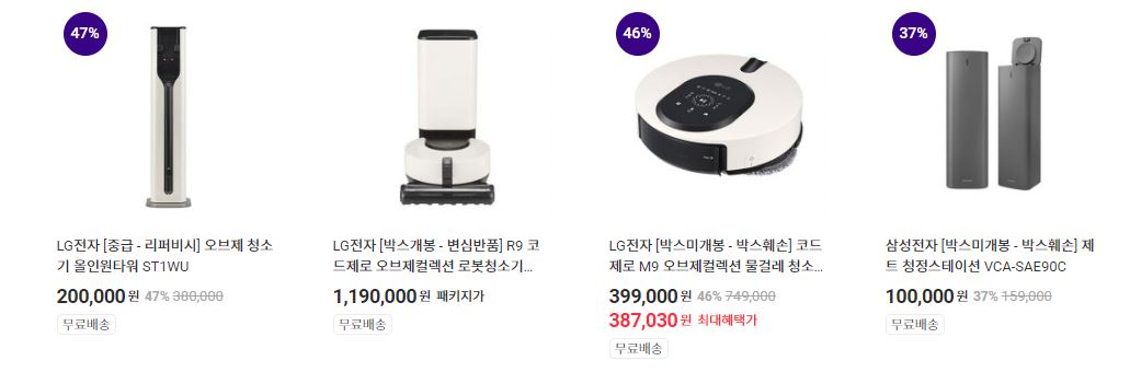 할인 품목 : 로봇청소기, 무선 청소기 등