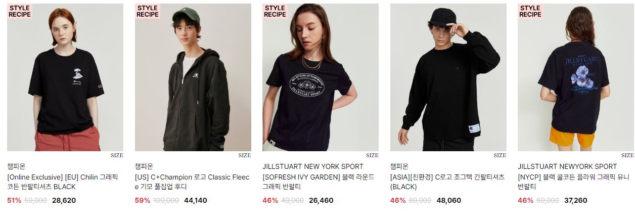 할인 품목 : 티셔츠, 후드티, 베스트 등