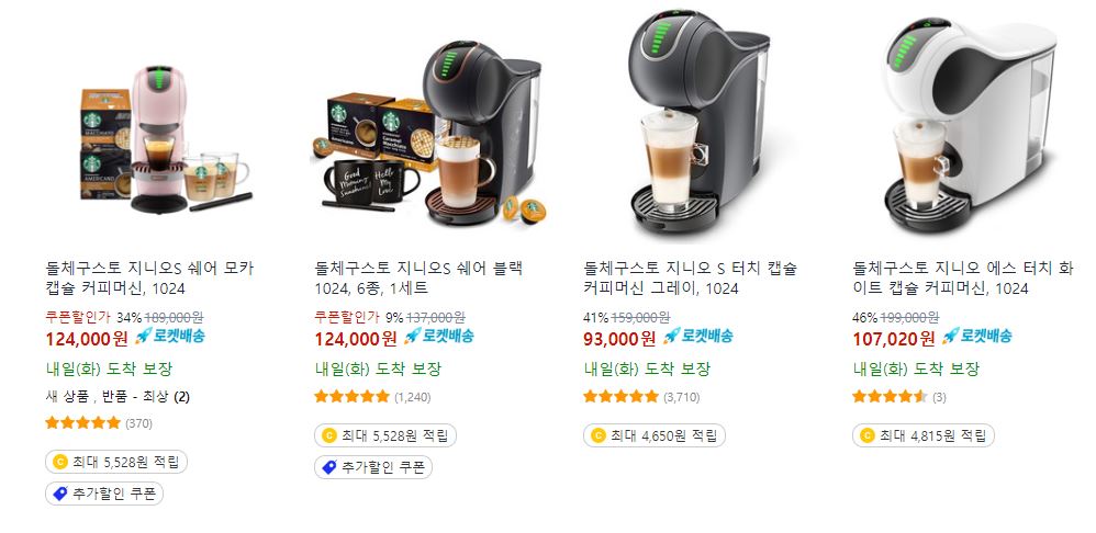 돌체구스토 다양한 제품을 할인 판매하네요.