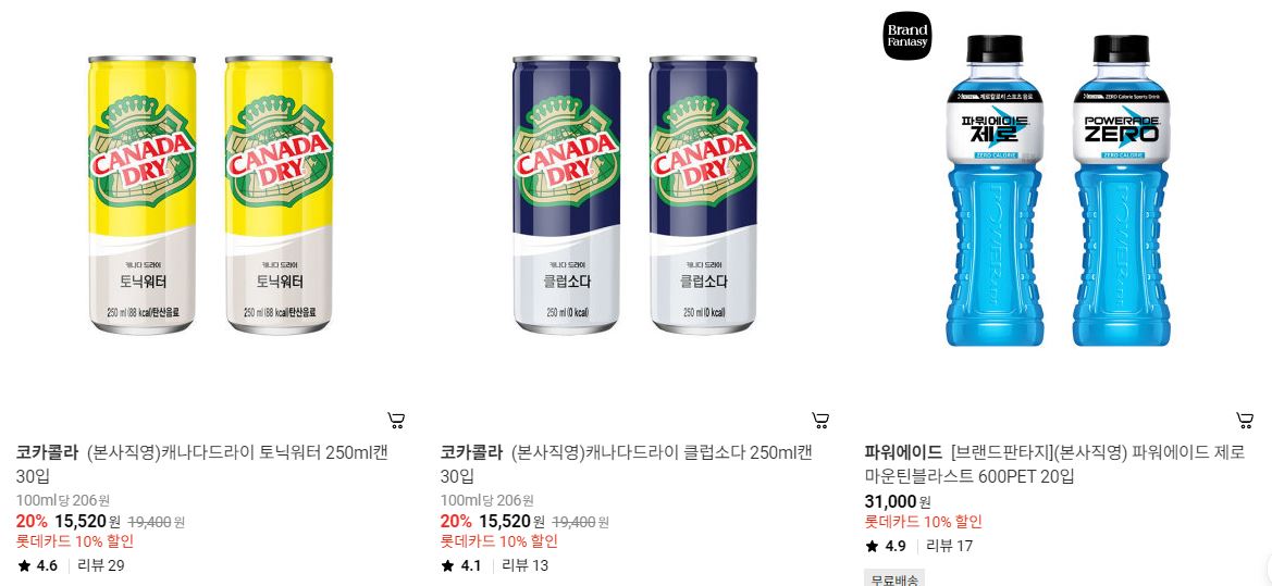 할인 품목 : 콜라, 커피 등