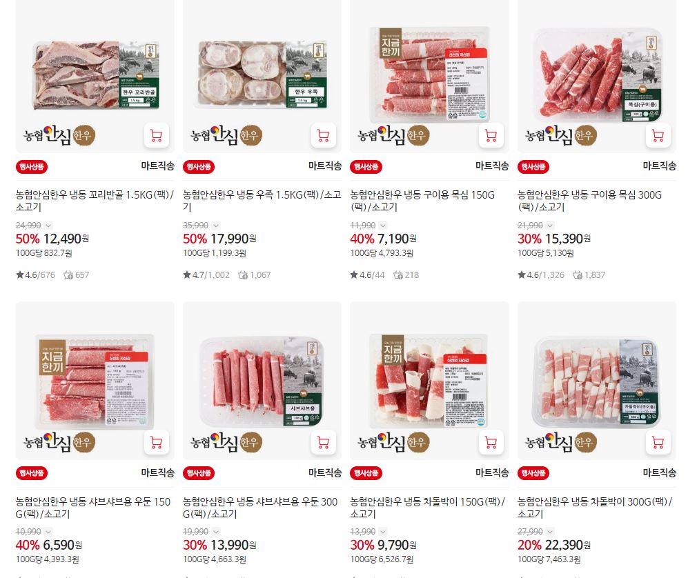 홈플러스 농협안심한우 다양한 제품을 할인 판매하네요.