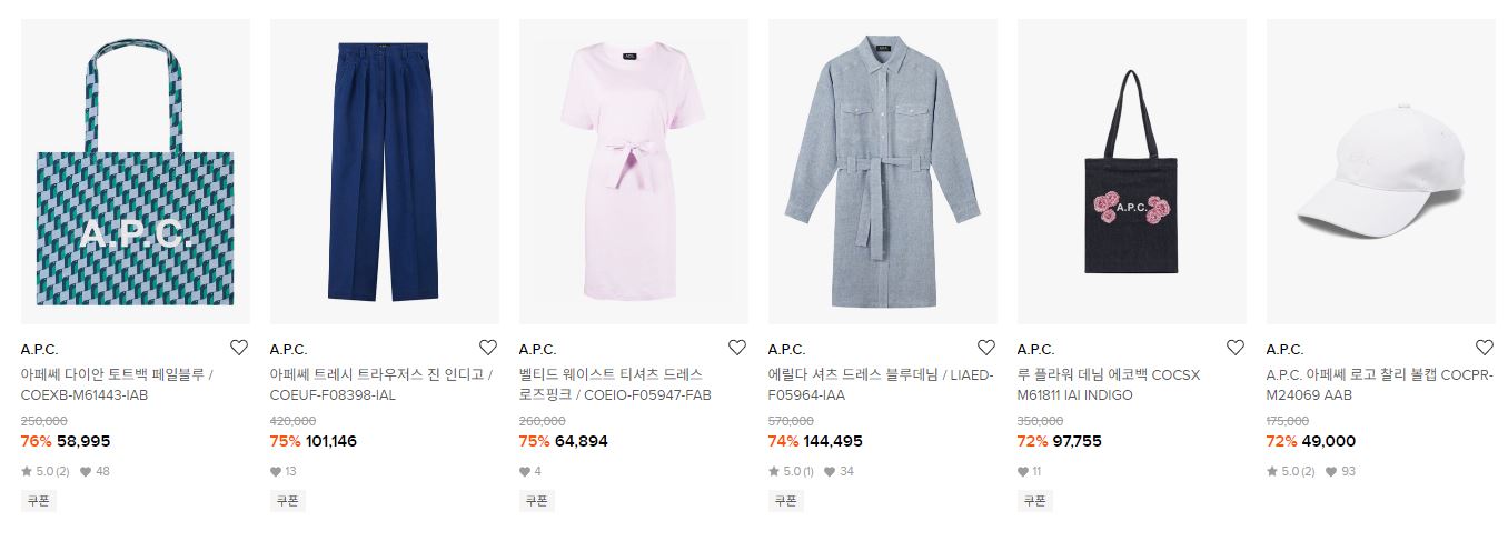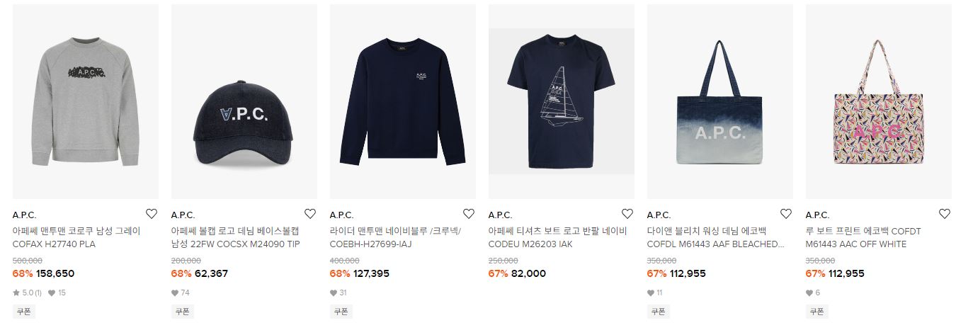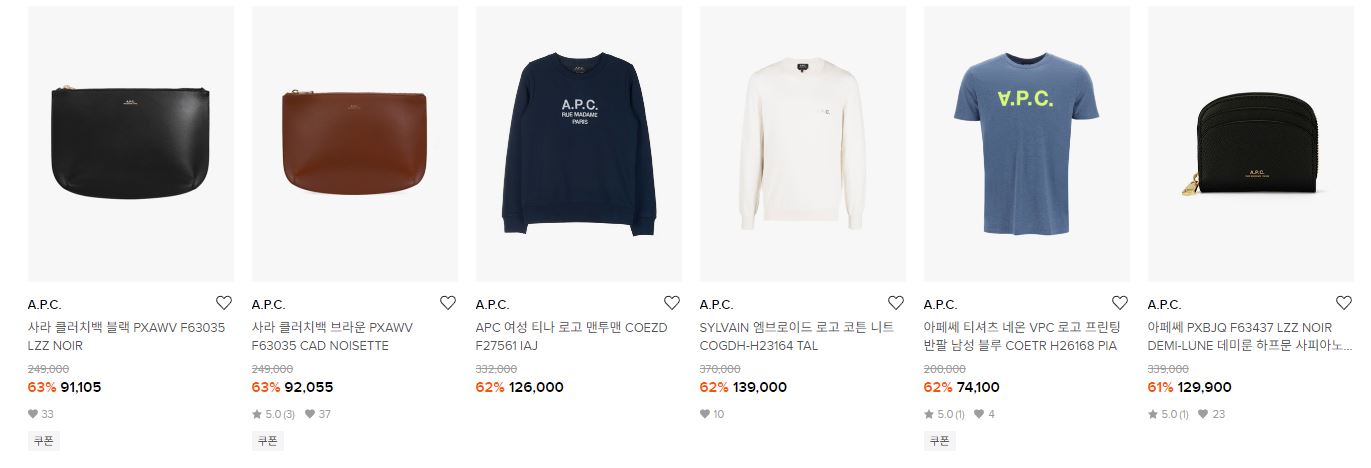 A.P.C. 다양한 제품을 할인 판매하네요.