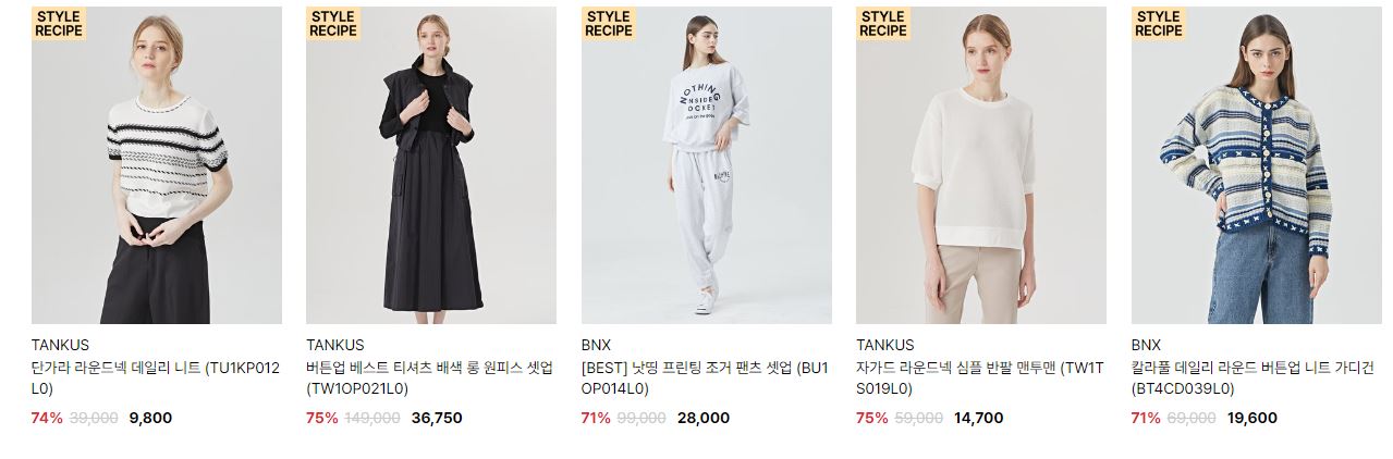 할인 품목 : 티셔츠, 원피스, 구두 등