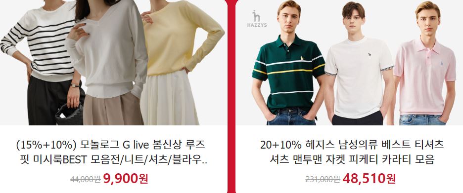 할인 품목 : 화장품, 의류 등