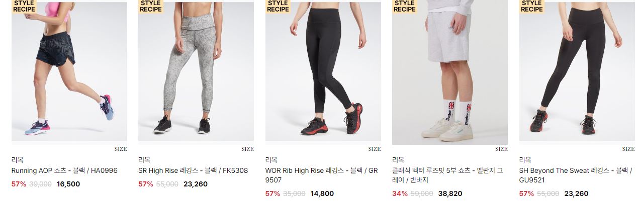 할인 품목 : 팬츠, 운동화, 팬츠 등
