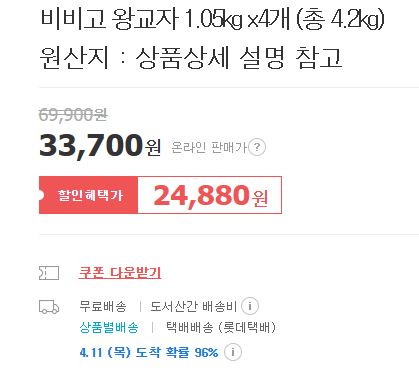 비비고 왕교자 1.05kg x4개 할인 정보 포스팅입니다.