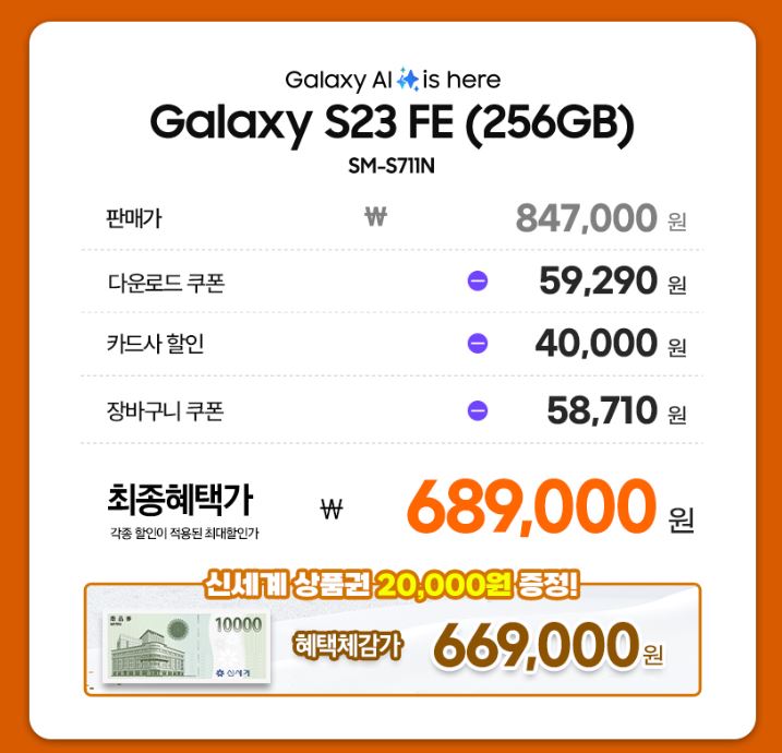 삼성 갤럭시 S23FE 100대 한정 할인 정보 [링크]