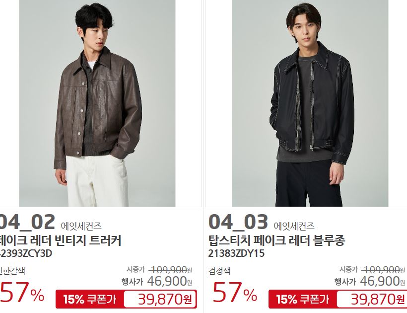 할인 품목 : 자켓, 티셔츠 등