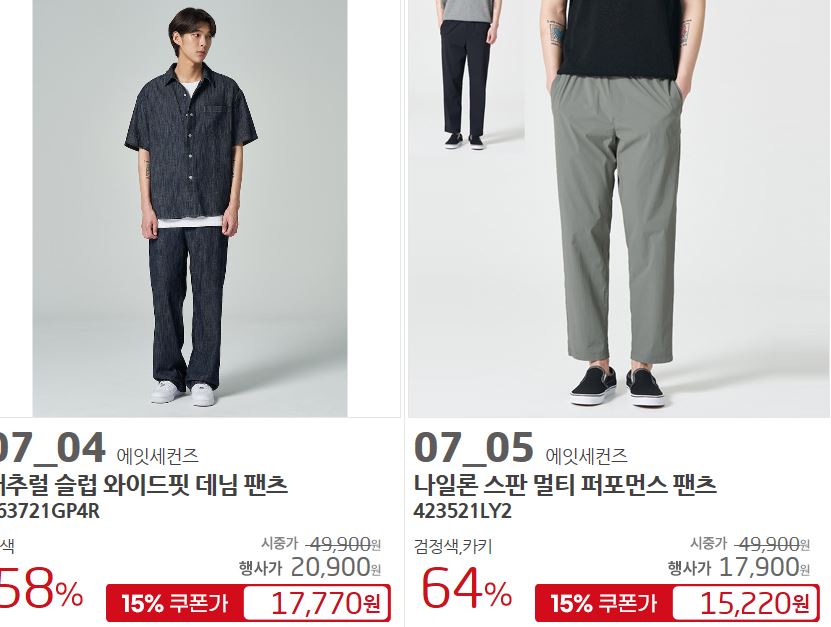 에잇세컨즈 다양한 제품을 할인 판매하네요.