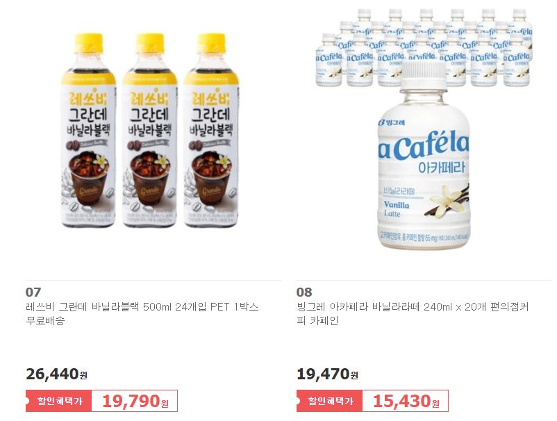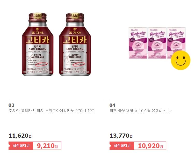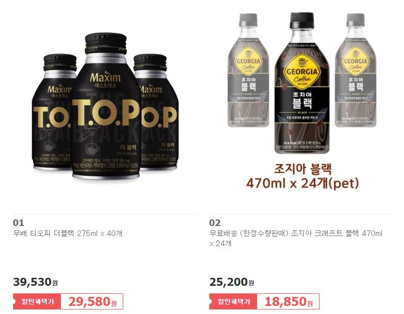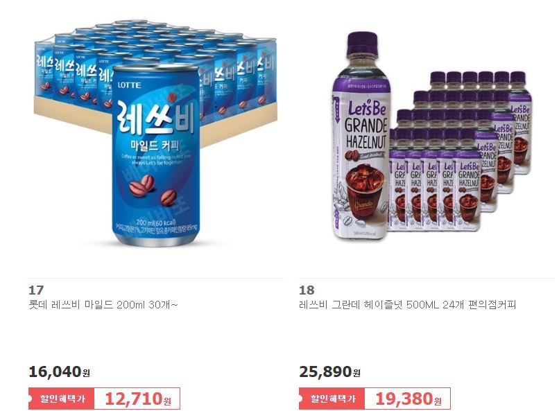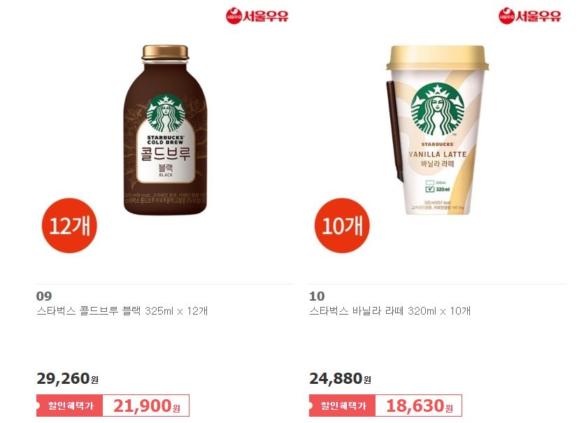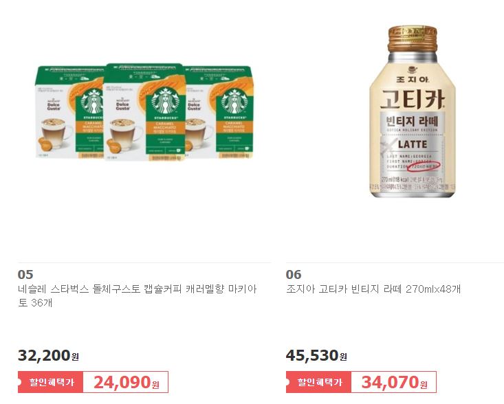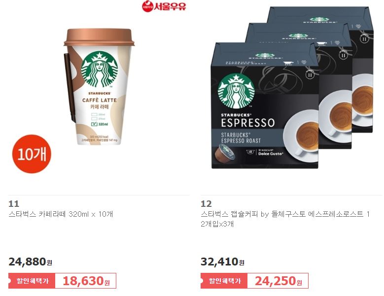 할인 브랜드 : 조지아, 스타벅스, 레쓰비 등