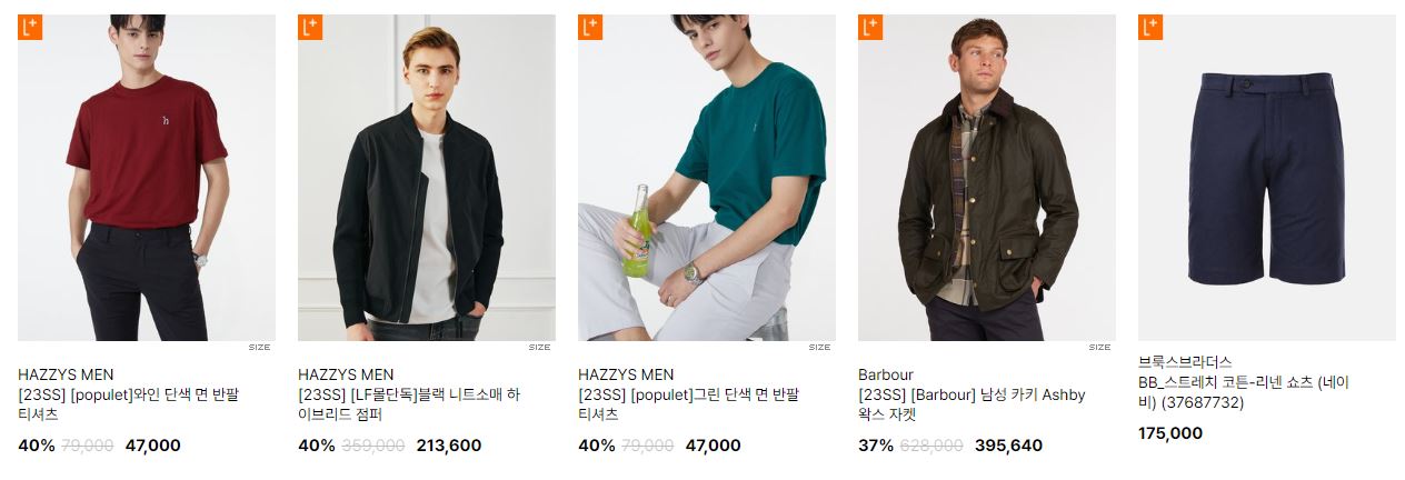 할인 품목 : 티셔츠, 자켓, 팬츠 등