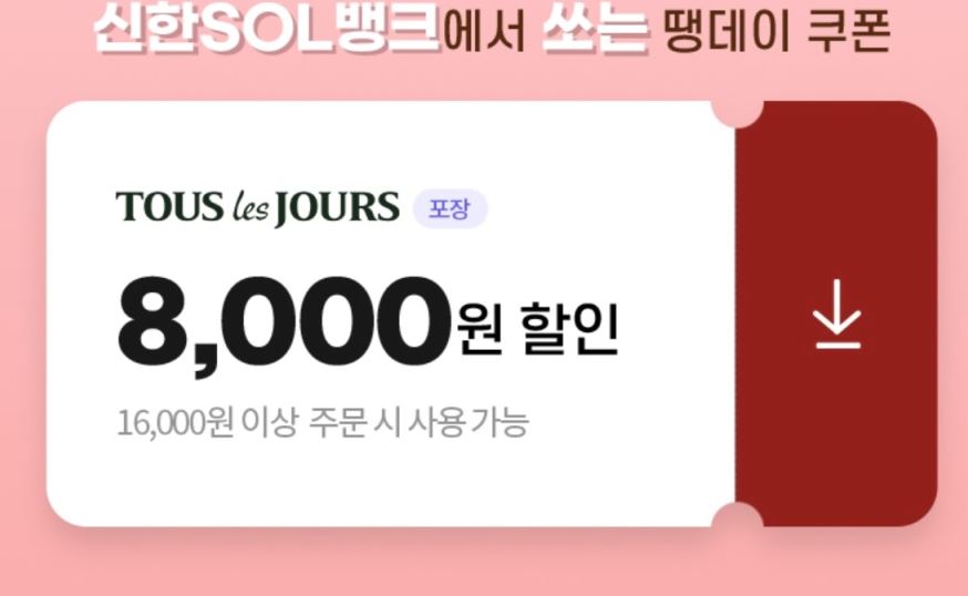땡겨요 앱에서 뚜레쥬르 할인 이벤트를 진행하네요.