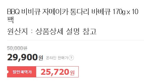 BBQ 비비큐 자메이카 통다리 바베큐 170g x 10팩을 할인 판매하네요.