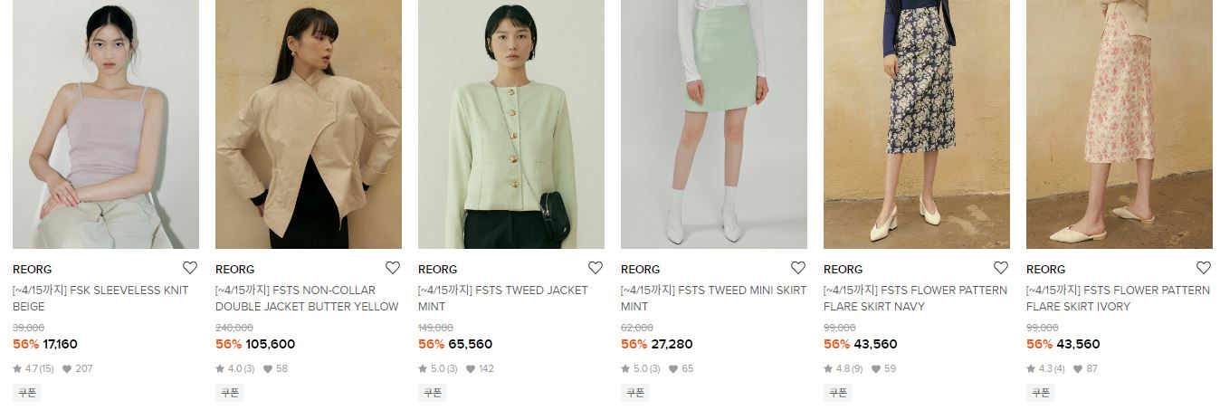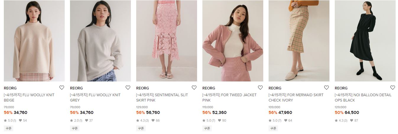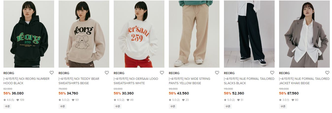 REORG 다양한 제품을 할인 판매하네요.