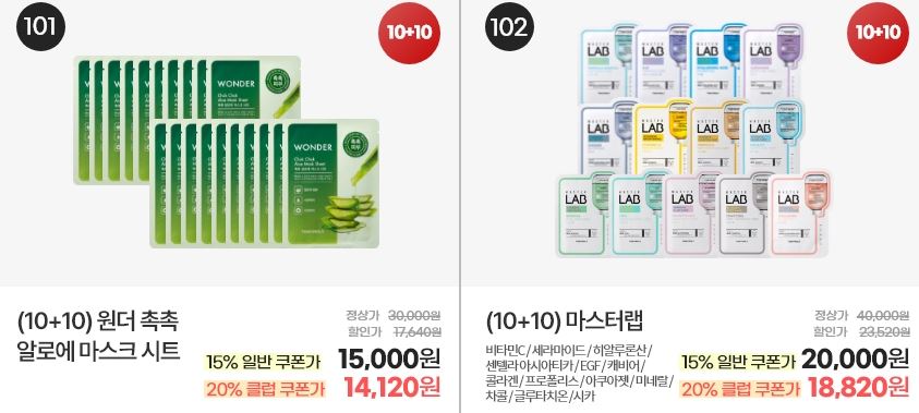 할인 품목 : 선스틱, 수분크림, 마스크팩 등