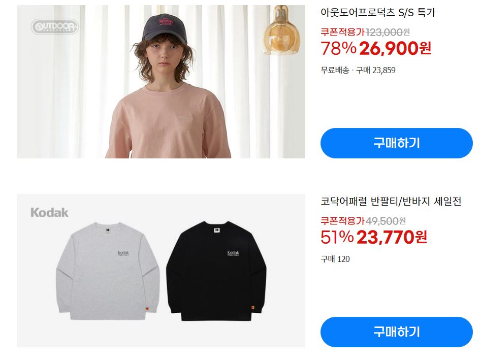 할인 품목 : 티셔츠, 팬츠 등
