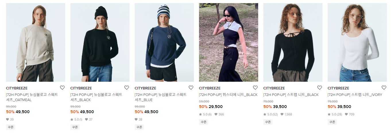 할인 품목 : 티셔츠, 니트 등