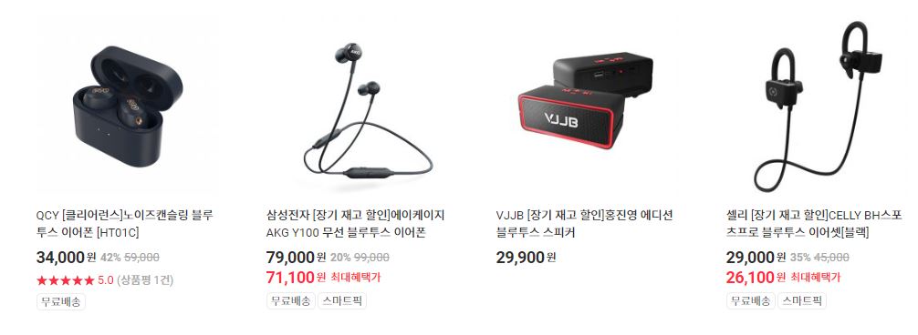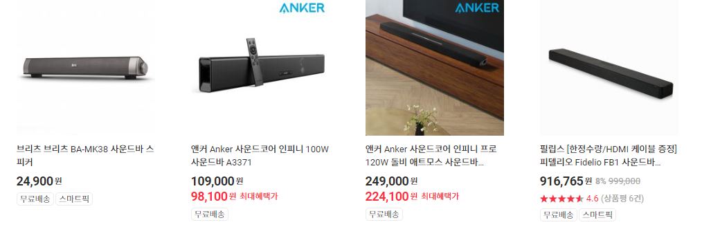 할인 품목 : 이어폰, 사운드바, 스피커 등
