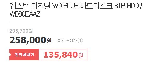 웨스턴 디지털 WD BLUE 하드디스크 8TB HDD 할인 정보 [링크]