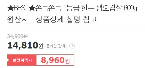 1등급 한돈 생오겹살 600g 할인 정보 포스팅입니다.