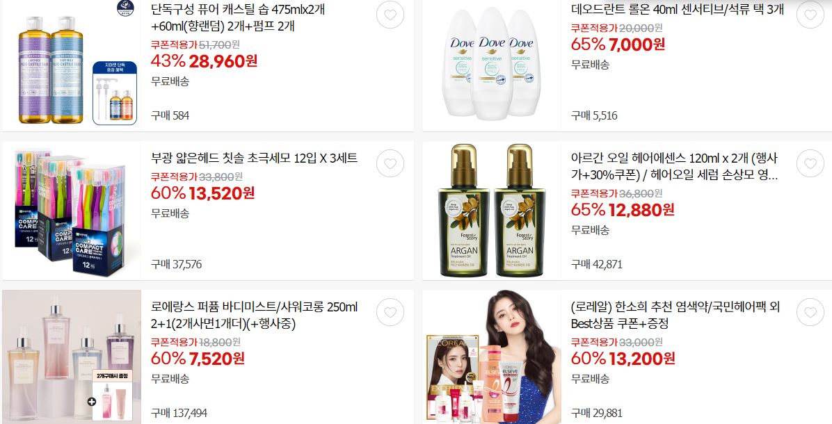 할인 품목 : 샴푸, 휴지, 칫솔 등