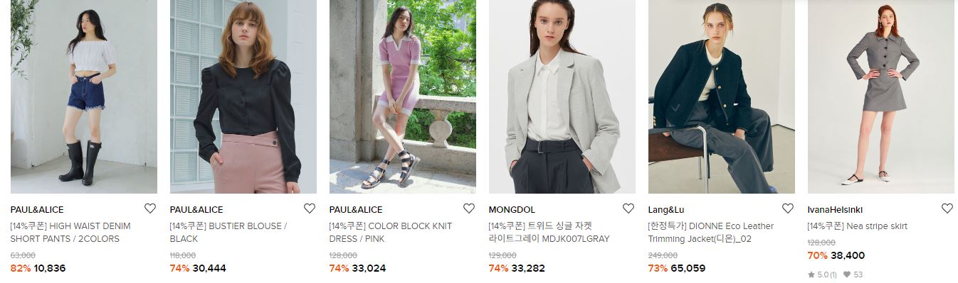 할인 품목 : 스커트, 니트, 티셔츠 등