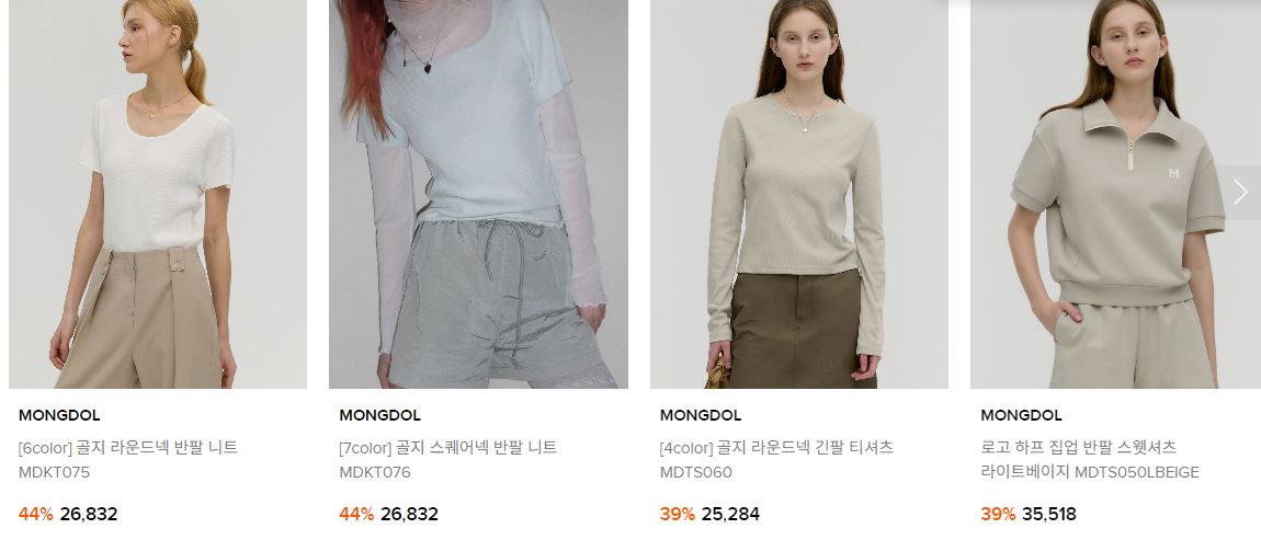 할인 품목 : 스커트, 니트, 티셔츠 등