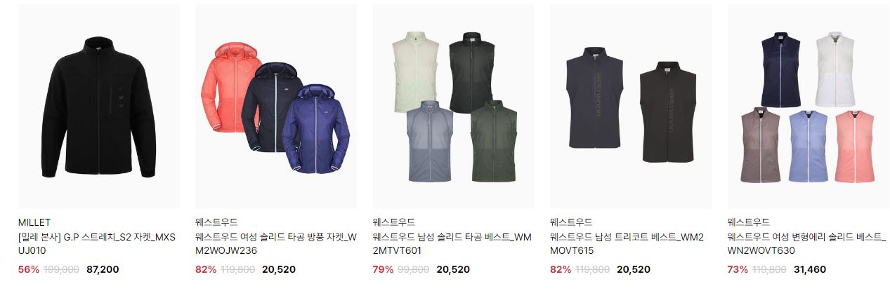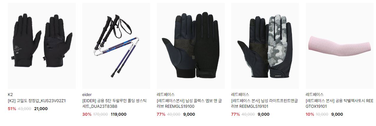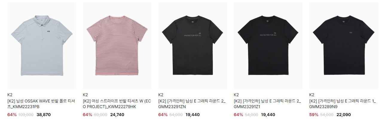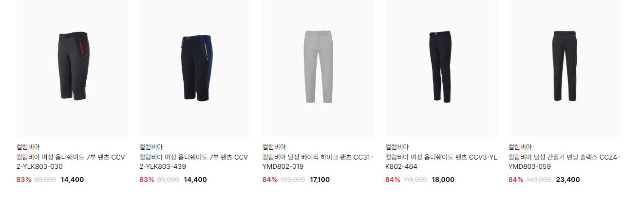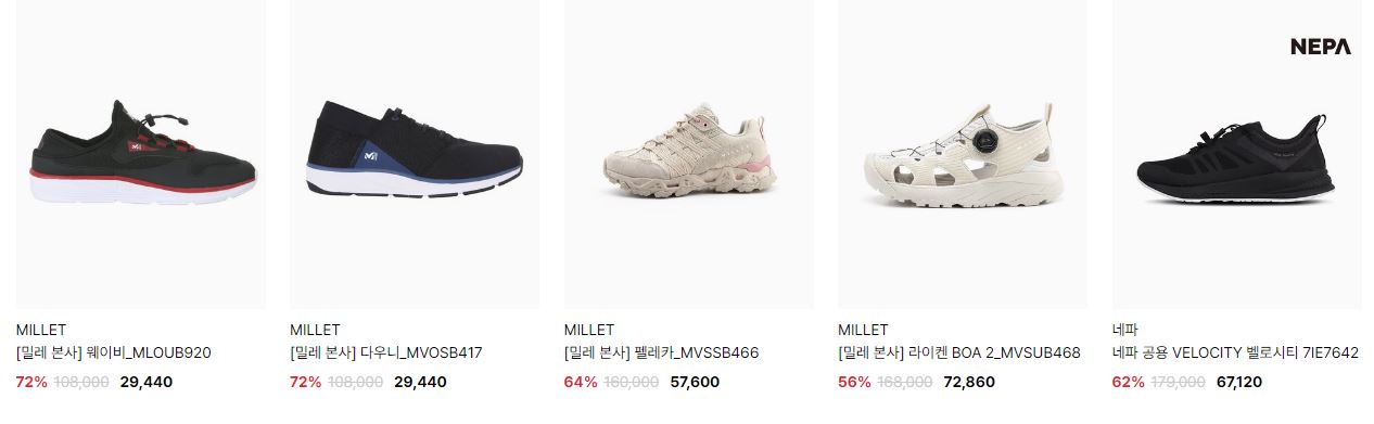 할인 품목 : 티셔츠, 팬츠, 신발 등