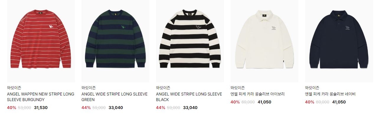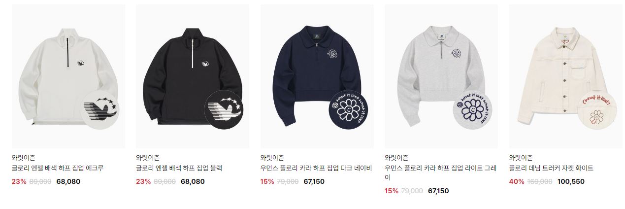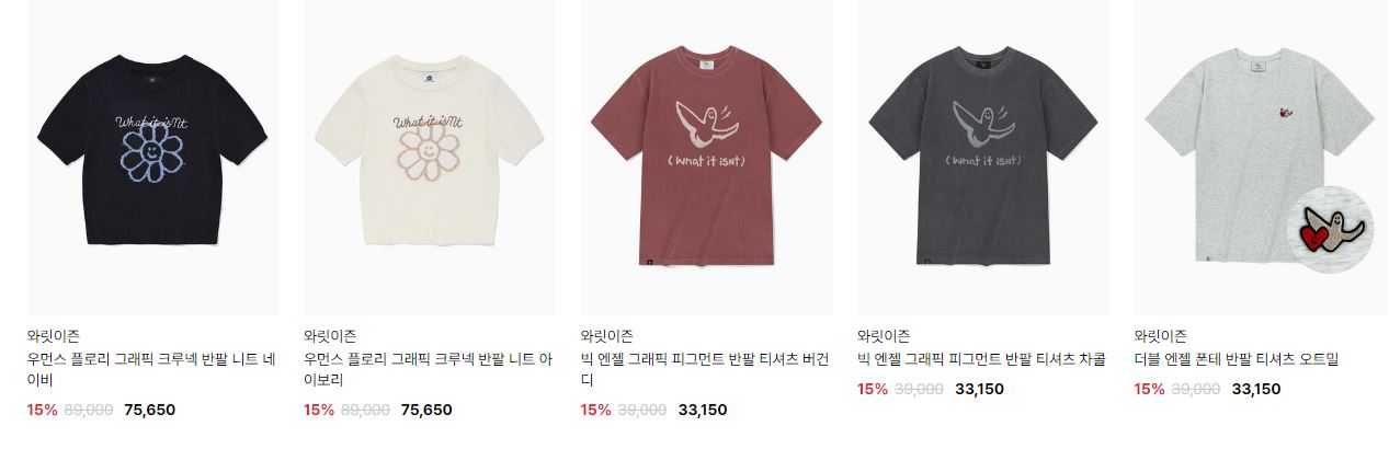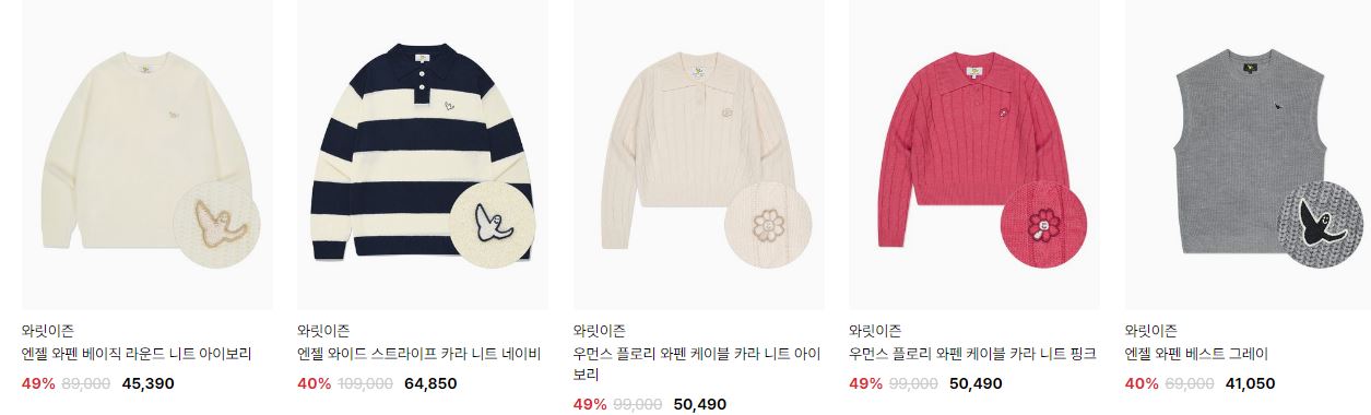 할인 품목 : 티셔츠, 니트, 팬츠 등