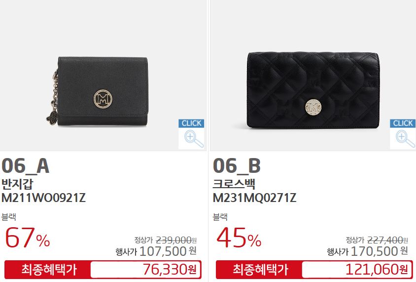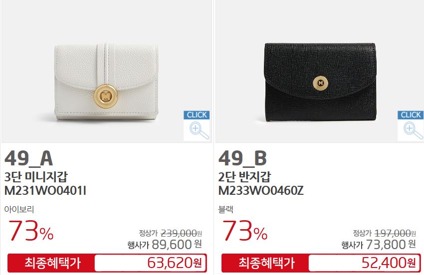 할인 품목 : 지갑, 숄더백 등