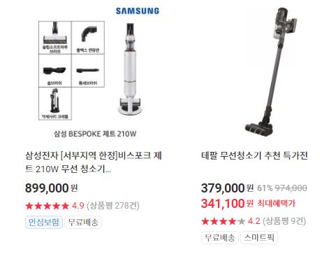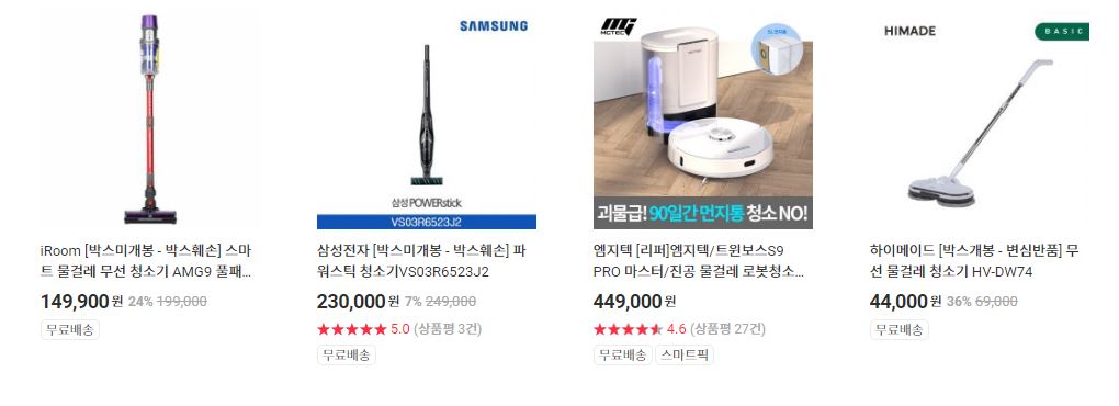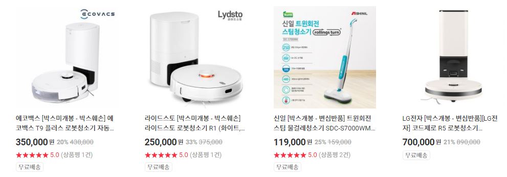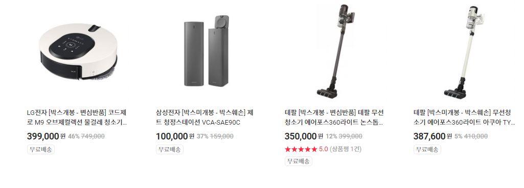 할인 품목 : 로봇청소기, 무선청소기 등