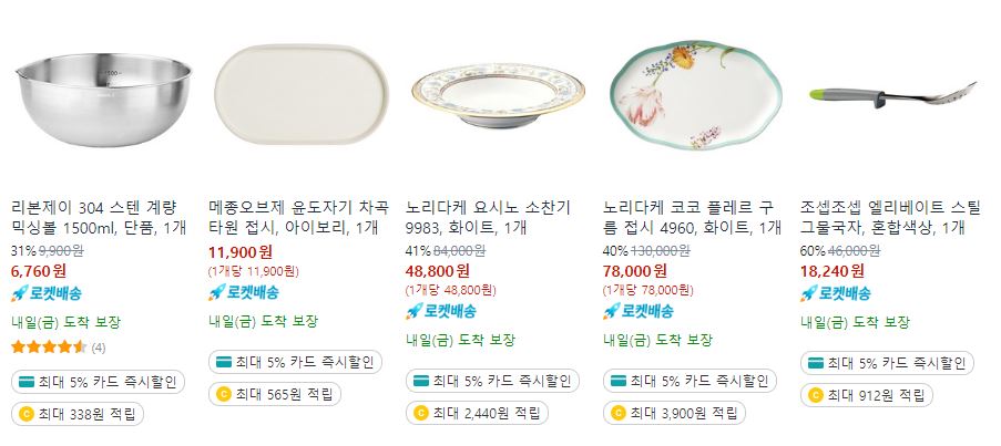 할인 품목 : 식기, 밀폐용기, 후라이팬 등
