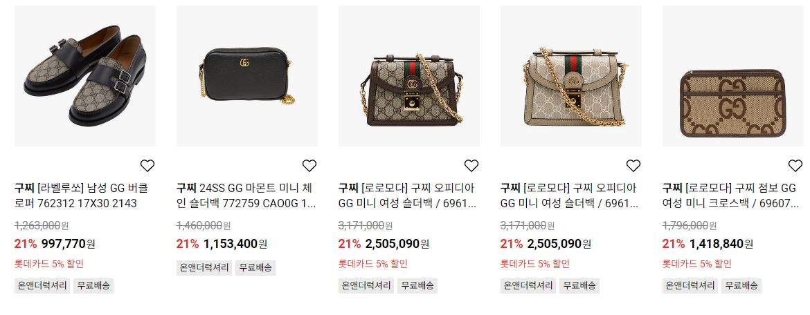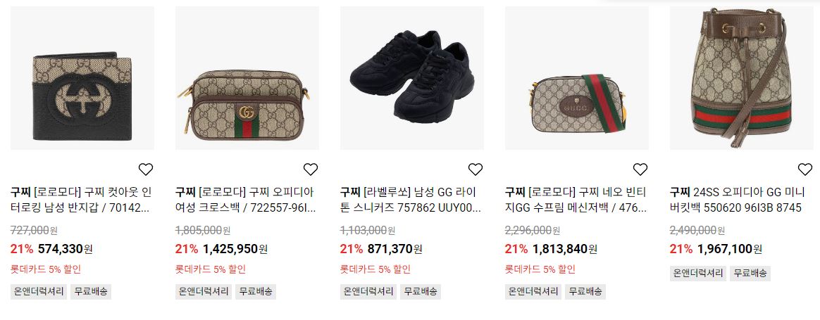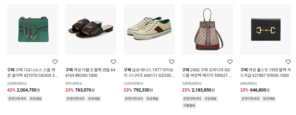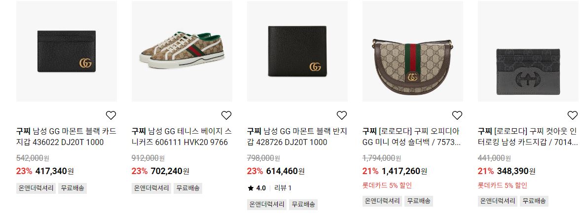 구찌 다양한 제품을 할인 판매하네요.