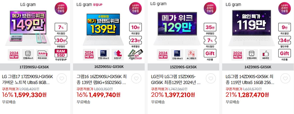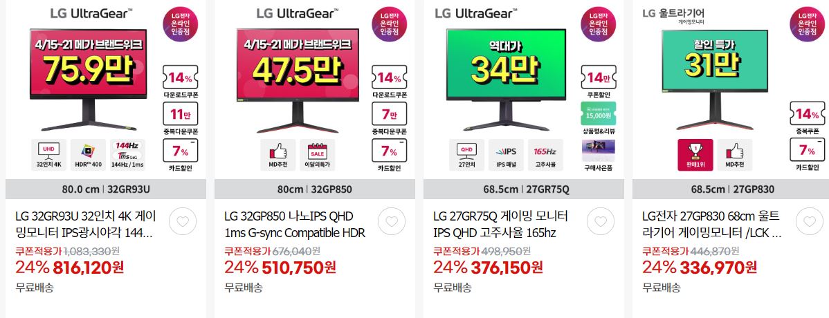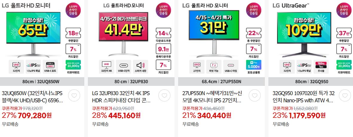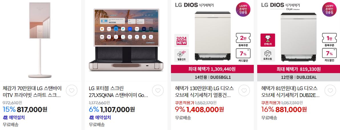LG전자 다양한 제품을 할인 판매하네요.