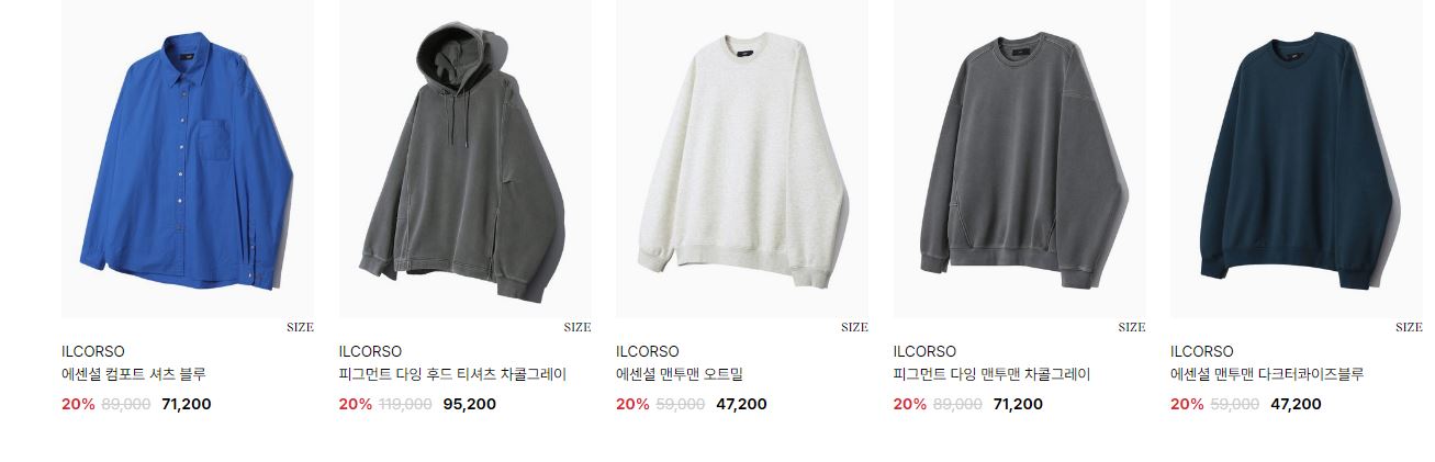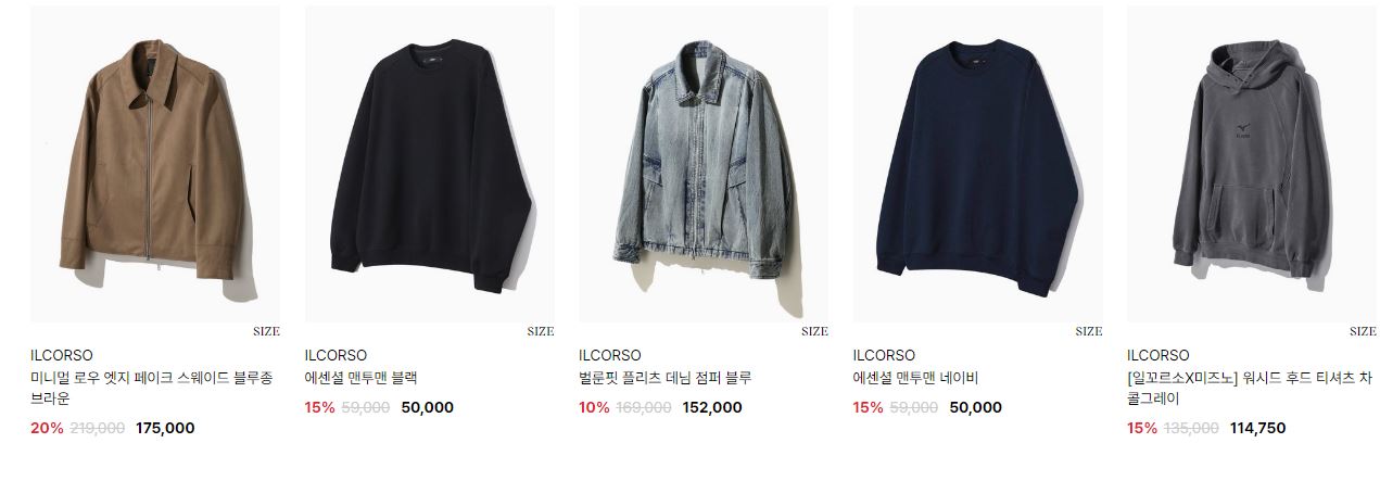 일꼬르소 다양한 제품을 할인 판매하네요.