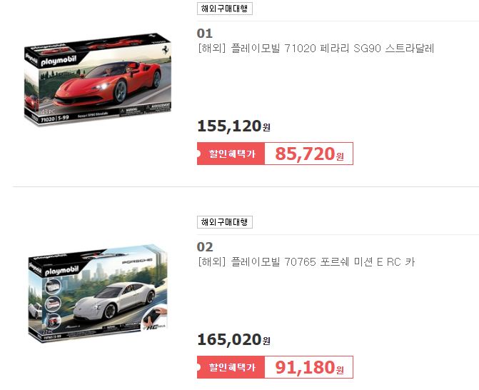 할인 품목 : 포르쉐, 나루토 등