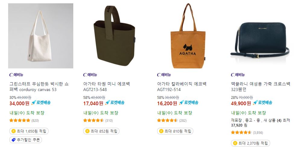 할인 품목 : 백팩, 토트백, 크로스백 등