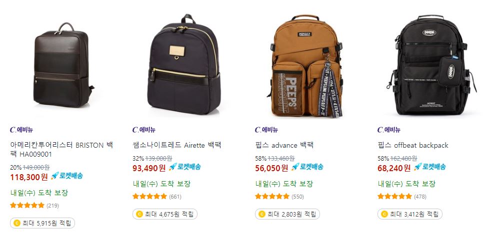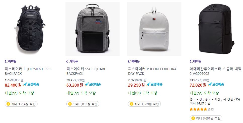 피스메이커/쌤소나이트 외 데일리 백 최대 74% 세일 정보 [링크]