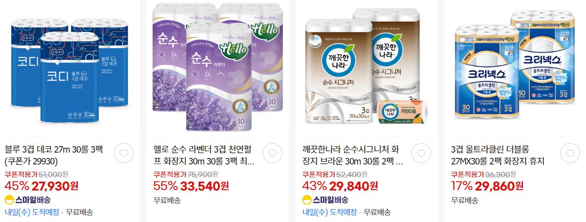할인 품목 : 화장지, 식품, 샴푸 등