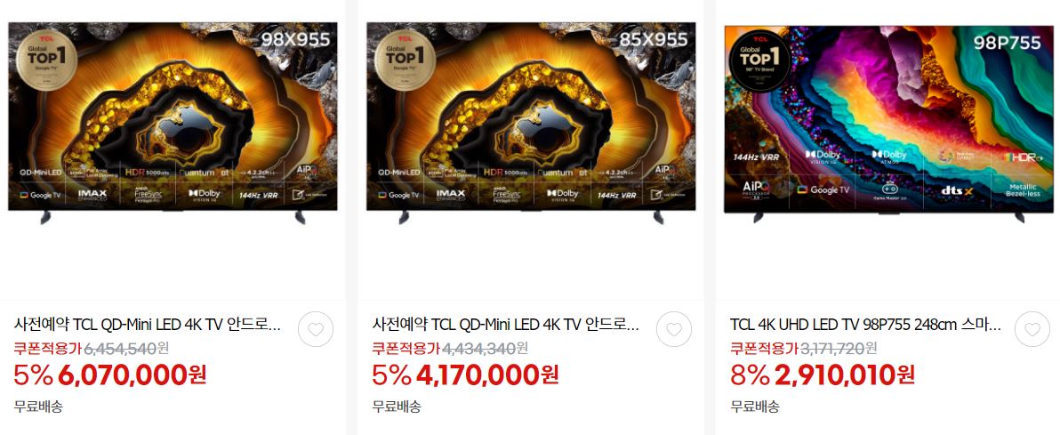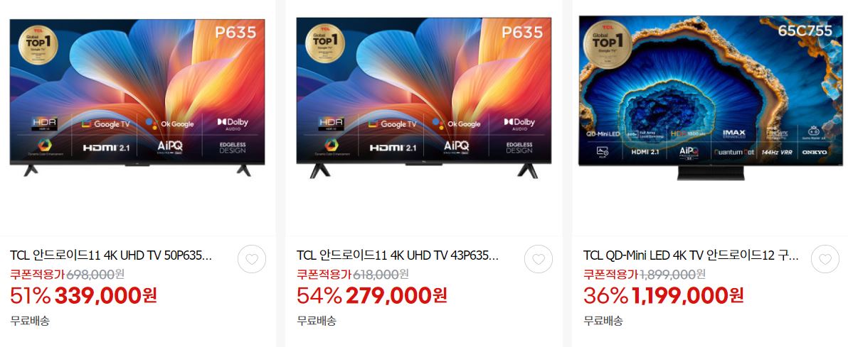 TCL 다양한 제품을 할인 판매하네요.