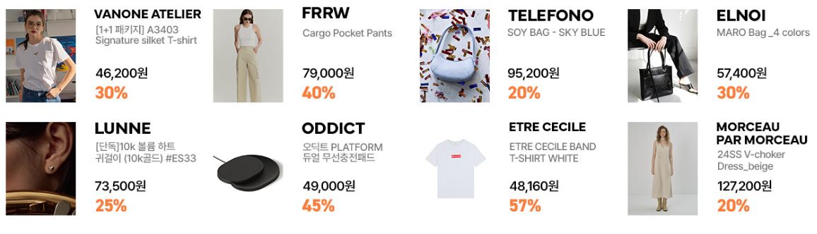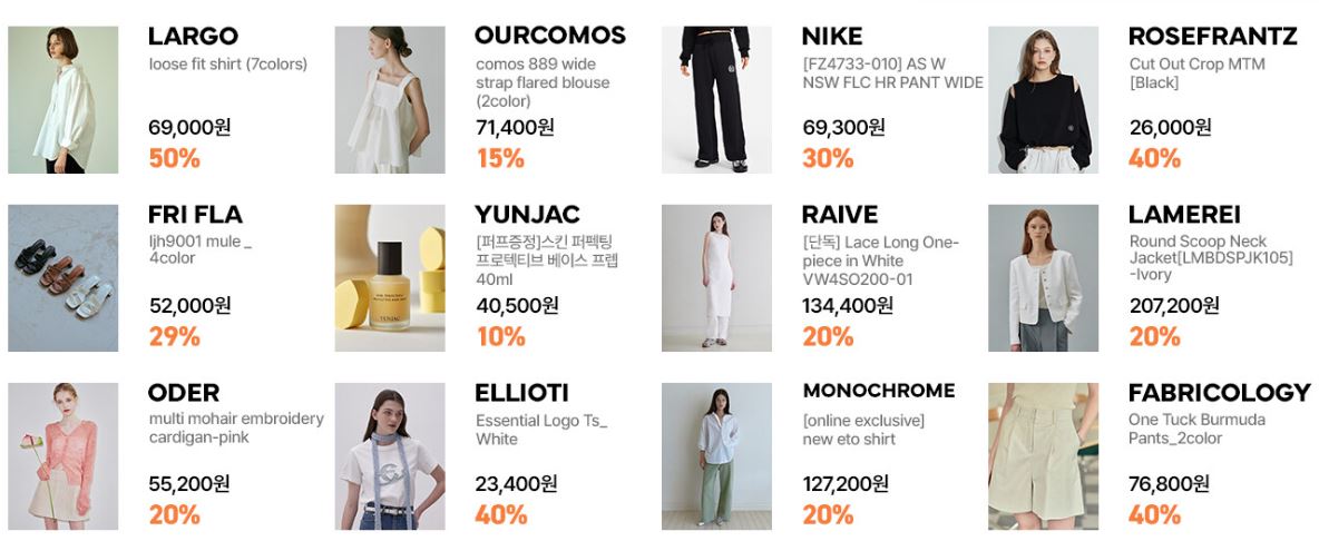 할인 품목 : 의류, 신발, 가방 등