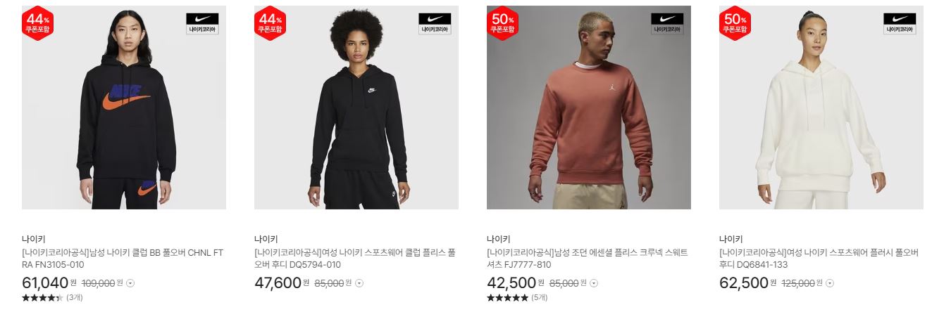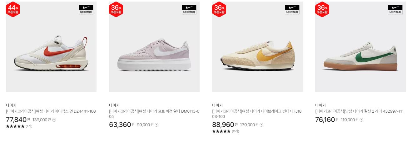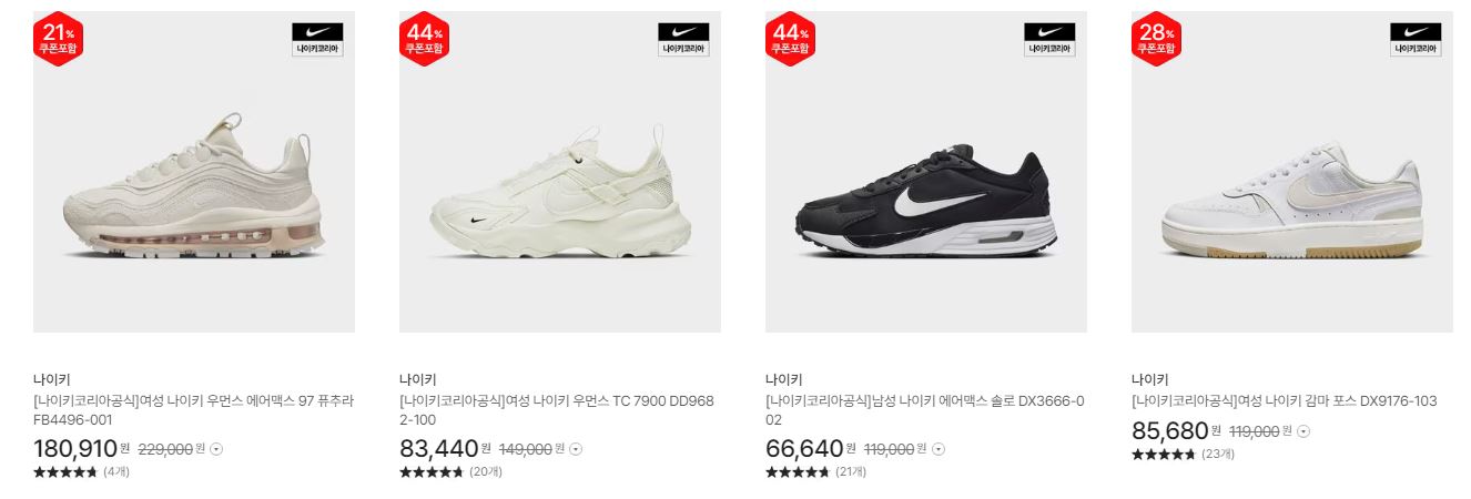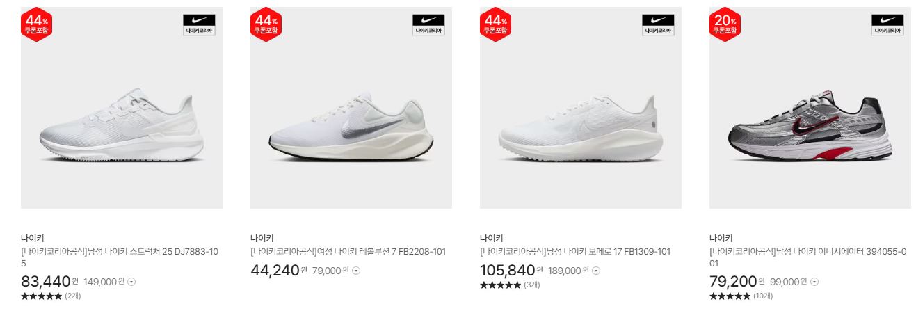 나이키 다양한 제품을 할인 판매하네요.