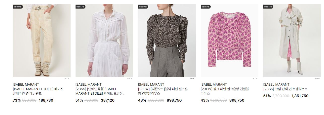 이자벨마랑 다양한 제품을 할인 판매하네요.