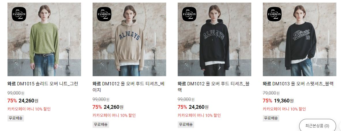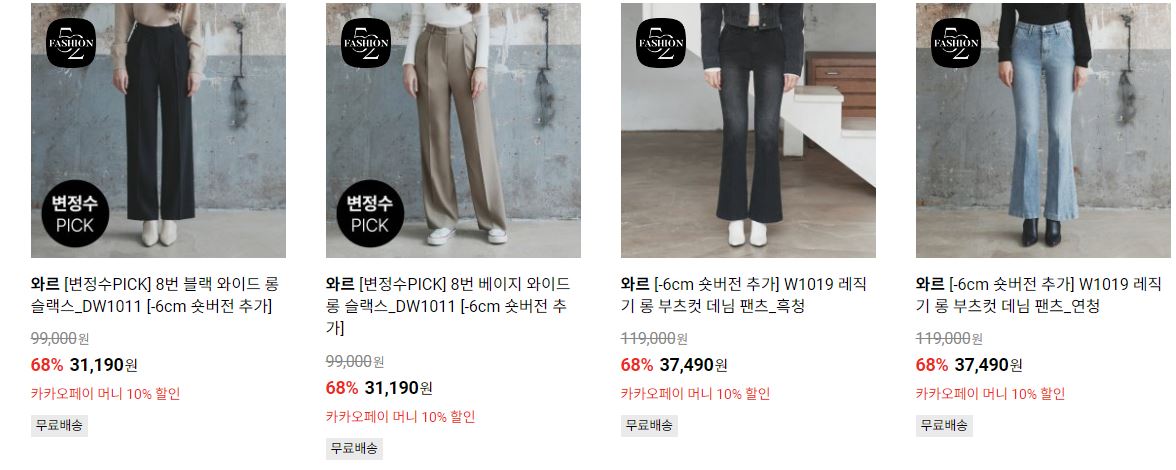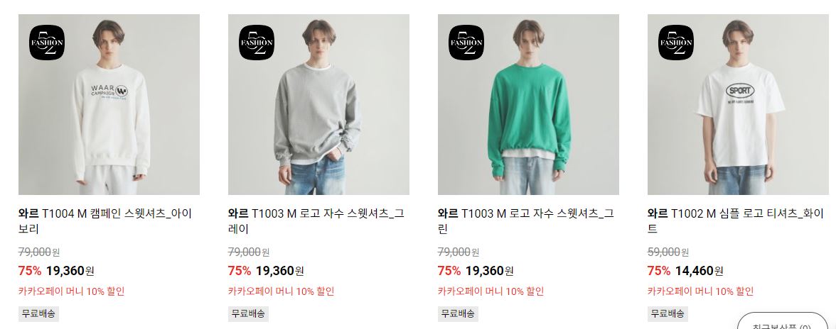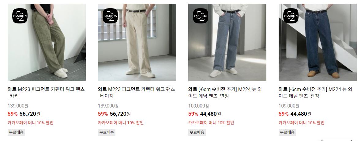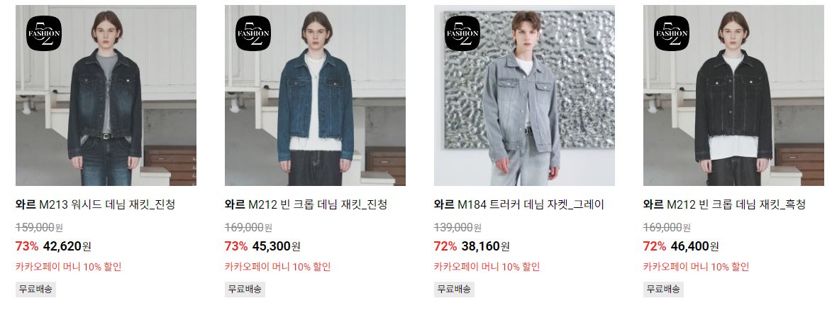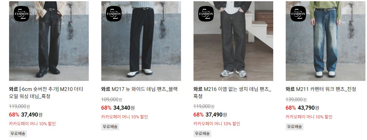 할인 품목 : 팬츠, 티셔츠, 자켓 등