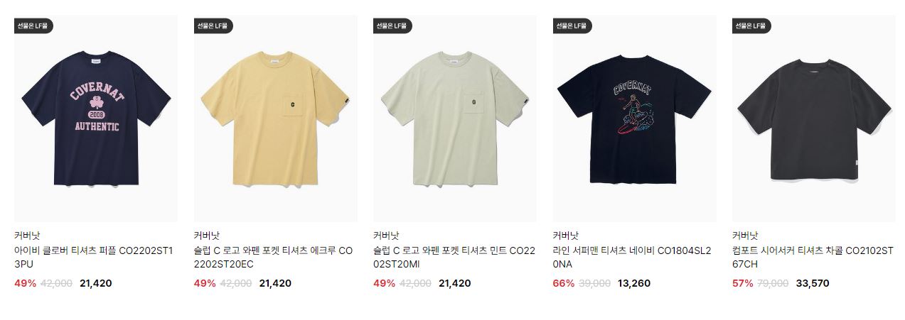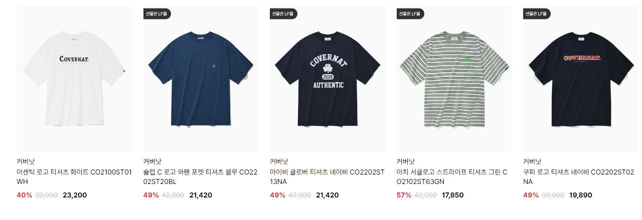 할인 품목 : 티셔츠, 팬츠 등