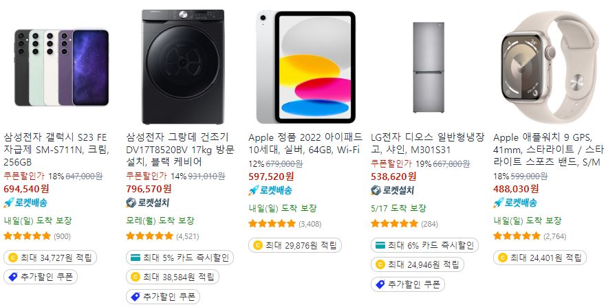 | 쿠팡 가전 반값 세일 (0) | 2024.04.24 |