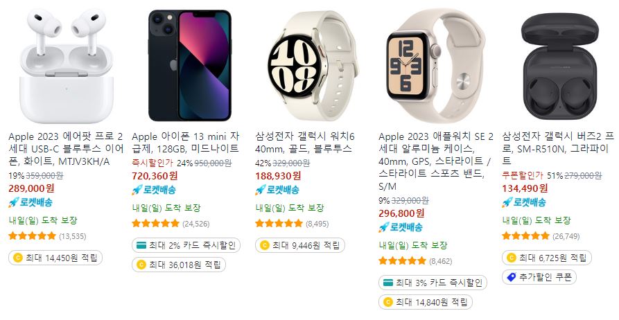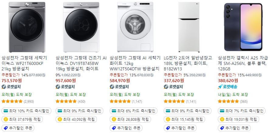 할인 품목 : 휴대폰, 스마트워치, 세탁기 등